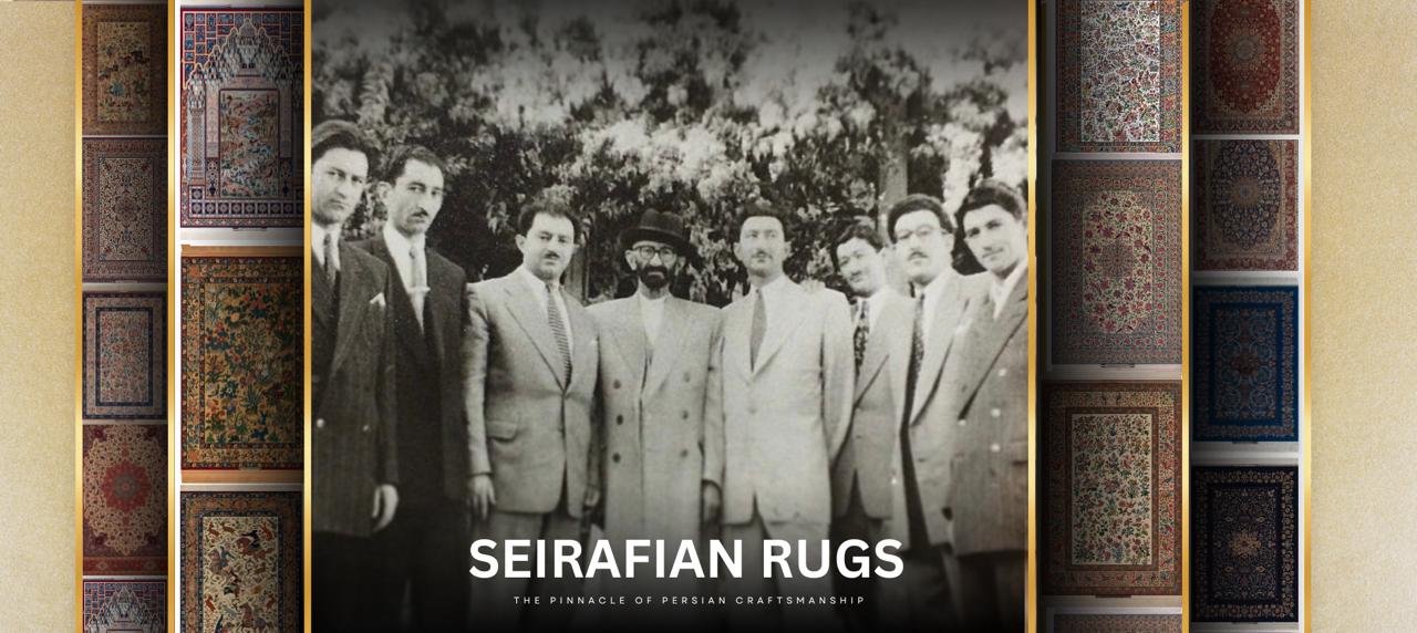 Haj Agha Reza Seirafian nacque nel 1884 in una famiglia stimata a Isfahan. Inizialmente lavorò nel settore finanziario, ma fu ispirato dal potenziale artistico dei tappeti persiani e decise di fondare la propria impresa di produzione di tappeti. La sua visione era quella di creare tappeti che esemplificassero i più alti standard di artigianalità e design, combinando motivi tradizionali persiani con innovazioni che distinguevano il suo lavoro. I tappeti Seirafian si distinguono per l'elevata densità di nodi, l'uso di lana e seta pregiate e tinture naturali, dando vita a pezzi non solo visivamente accattivanti, ma anche resistenti e duraturi. La dedizione di Seirafian alla qualità stabilì rapidamente un nuovo punto di riferimento nel settore e il suo nome divenne un marchio di autenticità ed eccellenza.